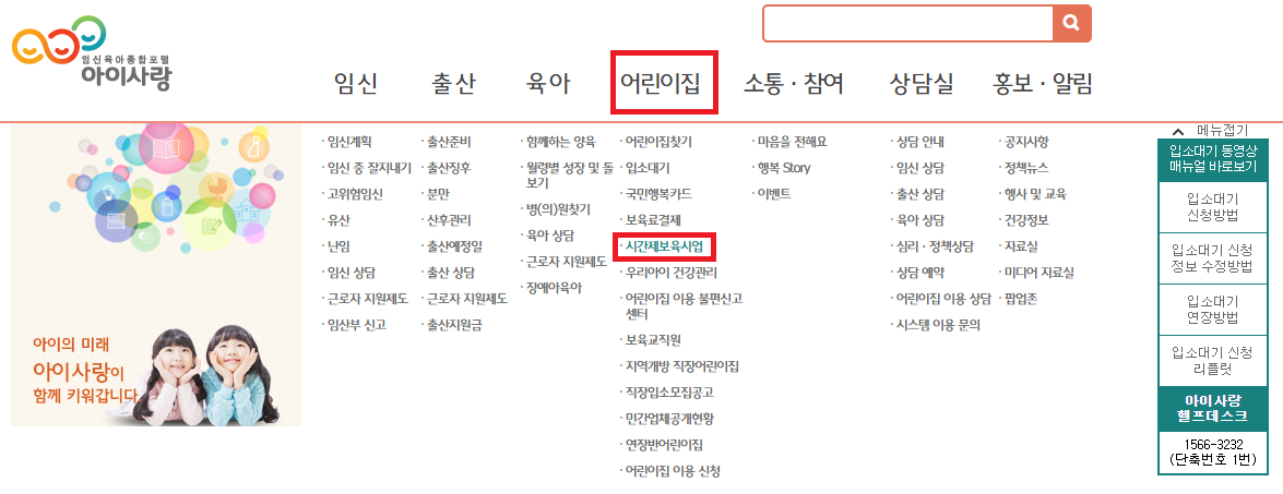 자세한 사항은 아이사랑 홈페이지 또는 대표전화(1661-9361)로 문의하시기 바랍니다.