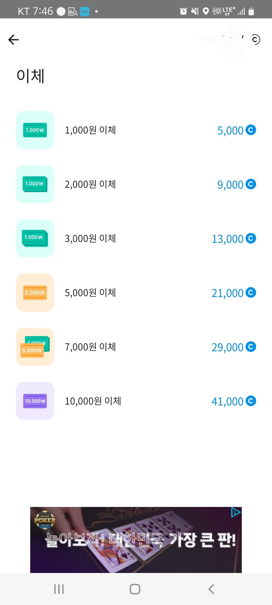 현금으로 이체도 가능합니다