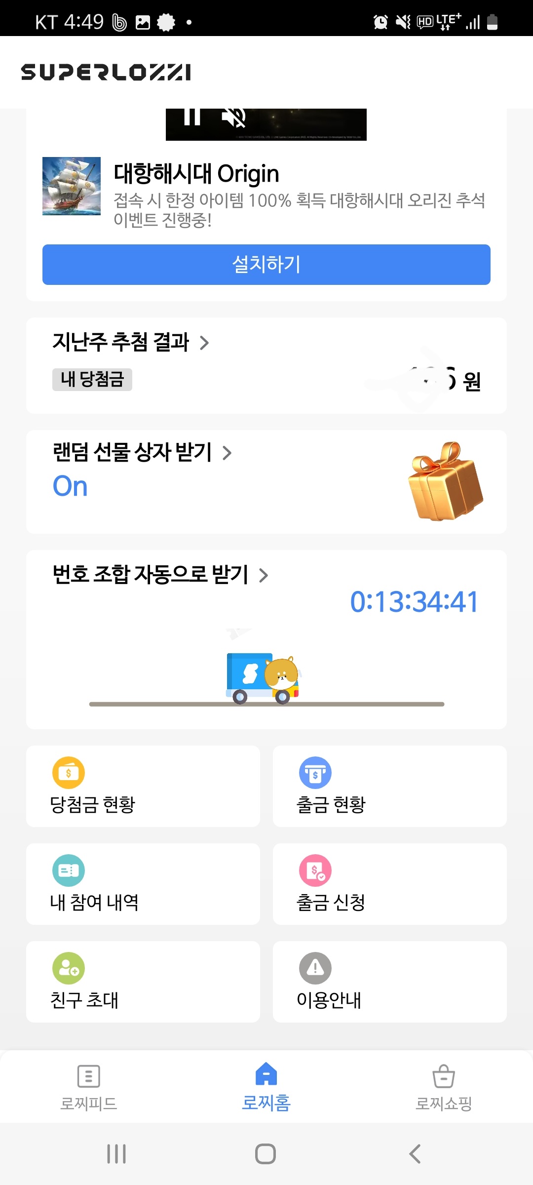 또한, 선물상자 받기 기능을 통해 무료 번호조합을 받을 수도 있습니다