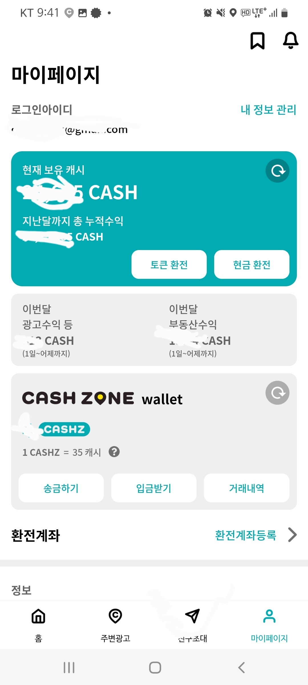 이렇게 모은 캐시는 현금 또는 토큰으로 환전할 수 있는데 토큰은 가상화폐 토큰으로 환전할 수 있는 것이고 현금은 말 그대로 현금으로 이체해줍니다