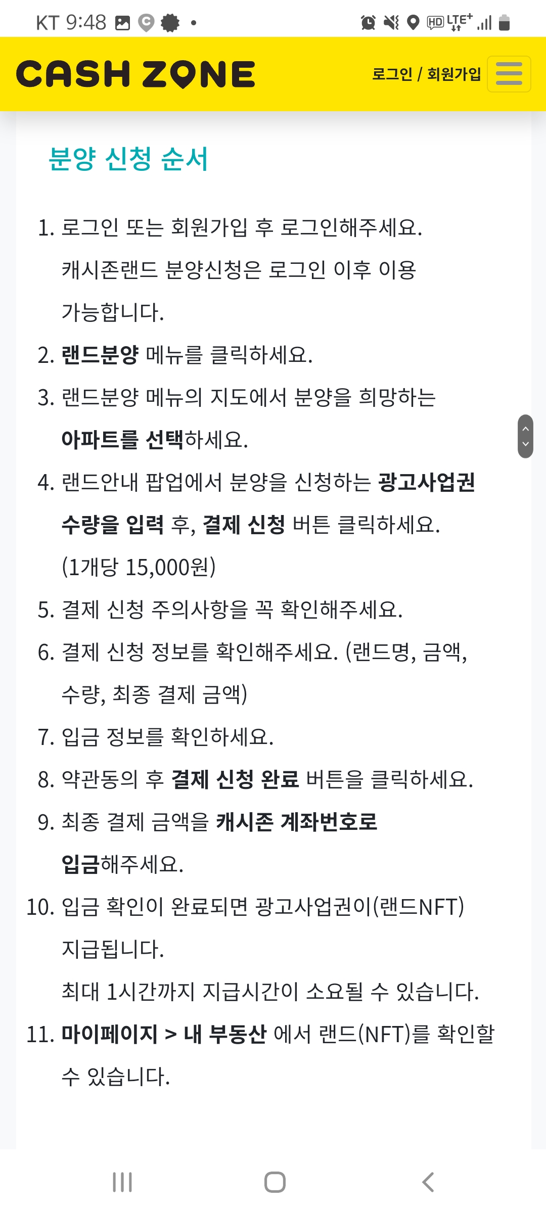 분양권을 구매하면 내 랜드가 생성되고 추후 광고를 시청한 금액에서 해당지역 전체 랜드수에서 본인 소유 랜드 수를 안분하여 추가 캐시를 지급합니다