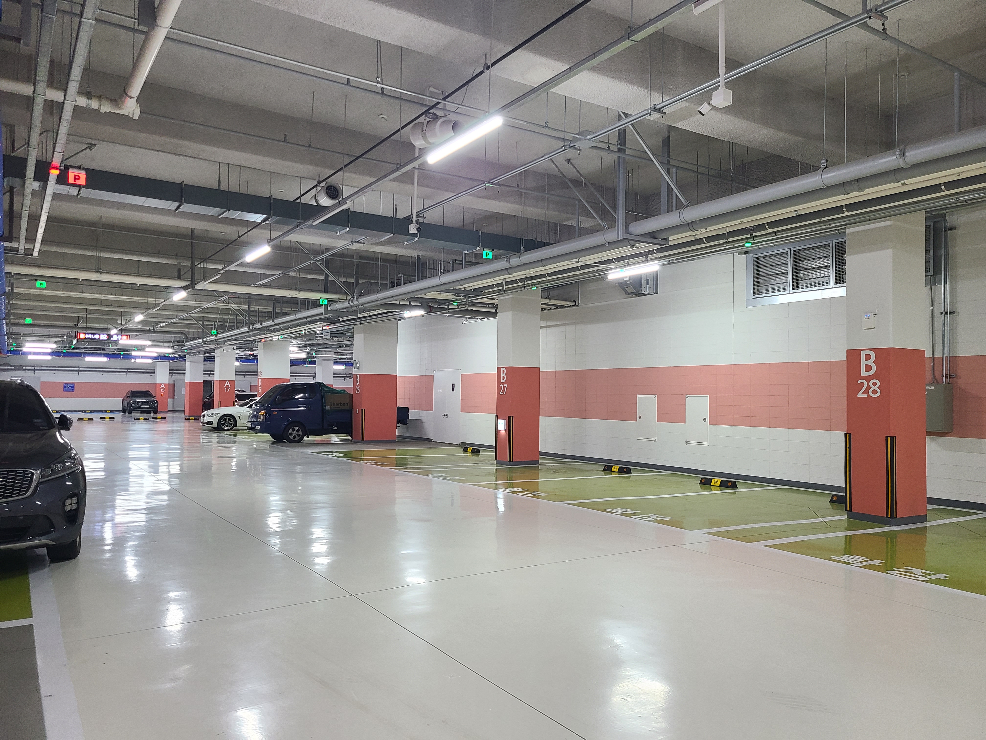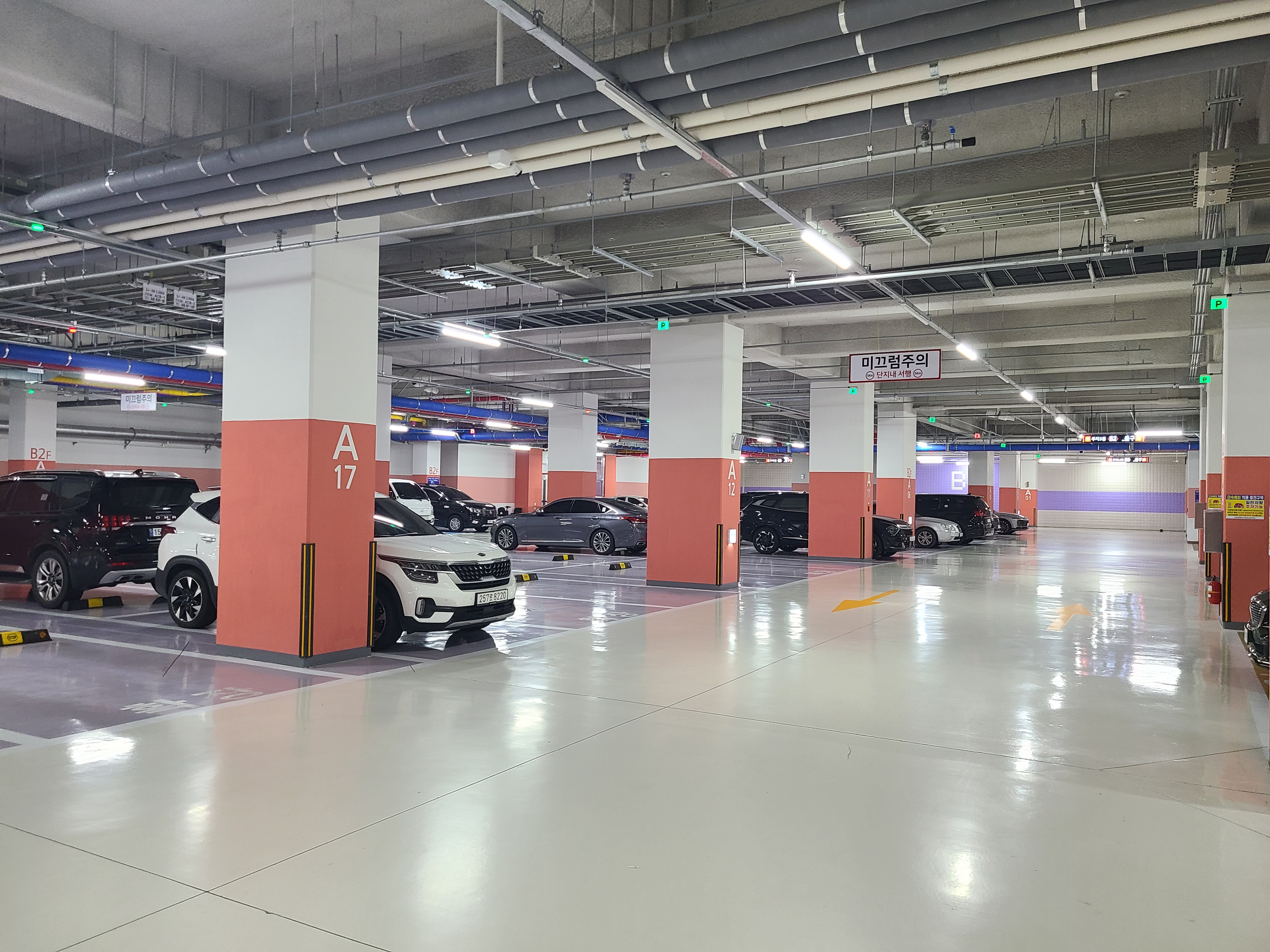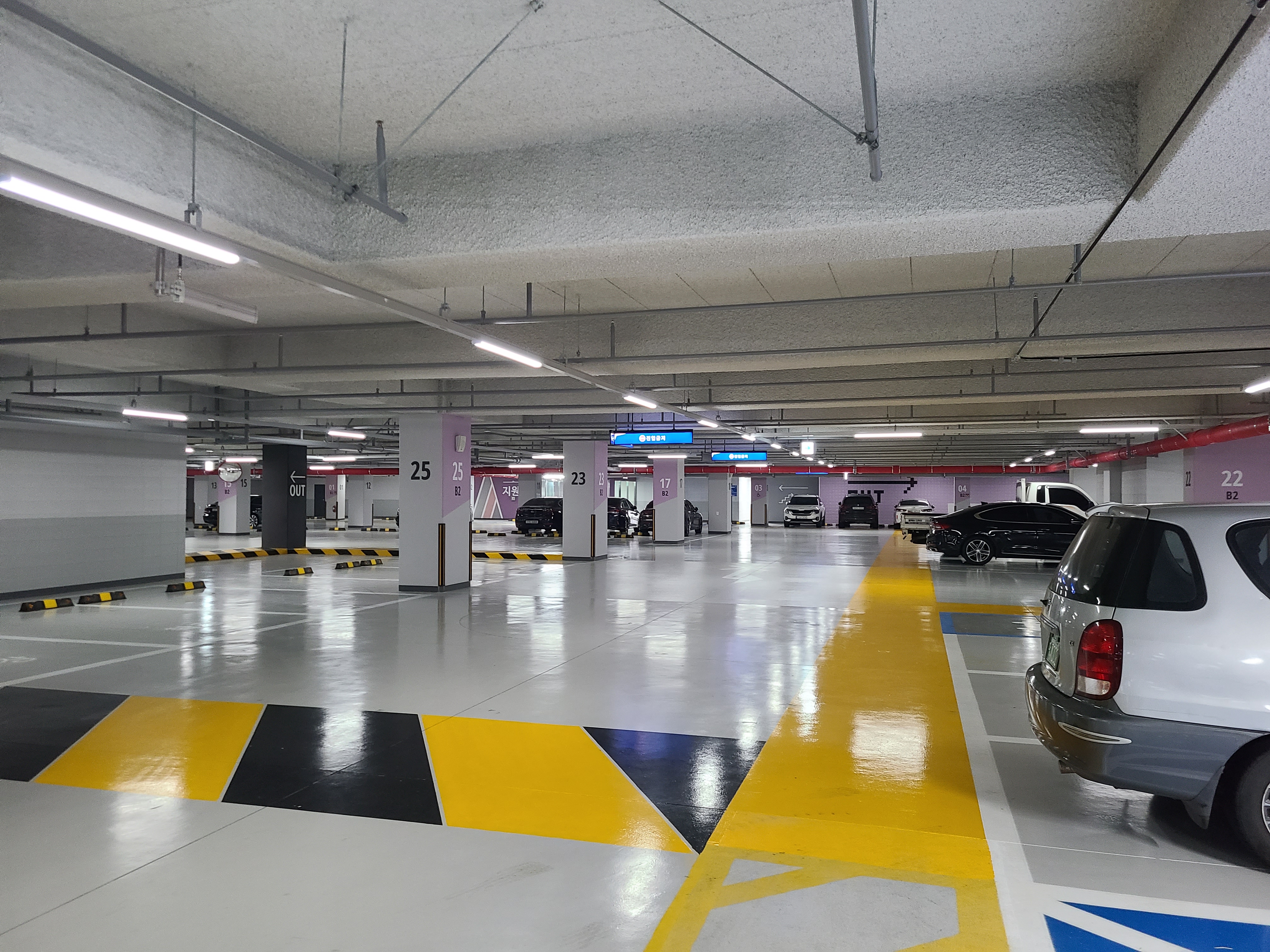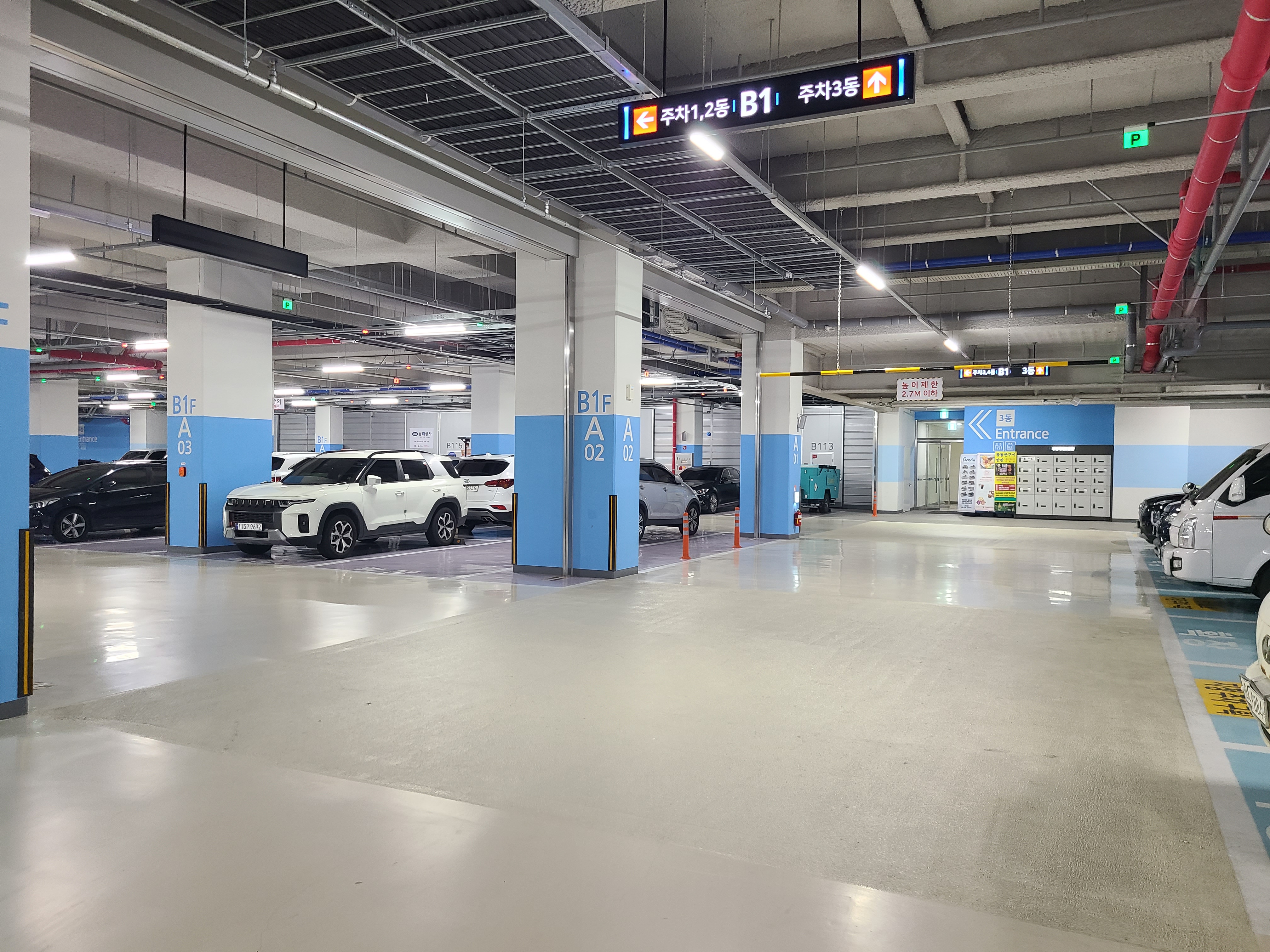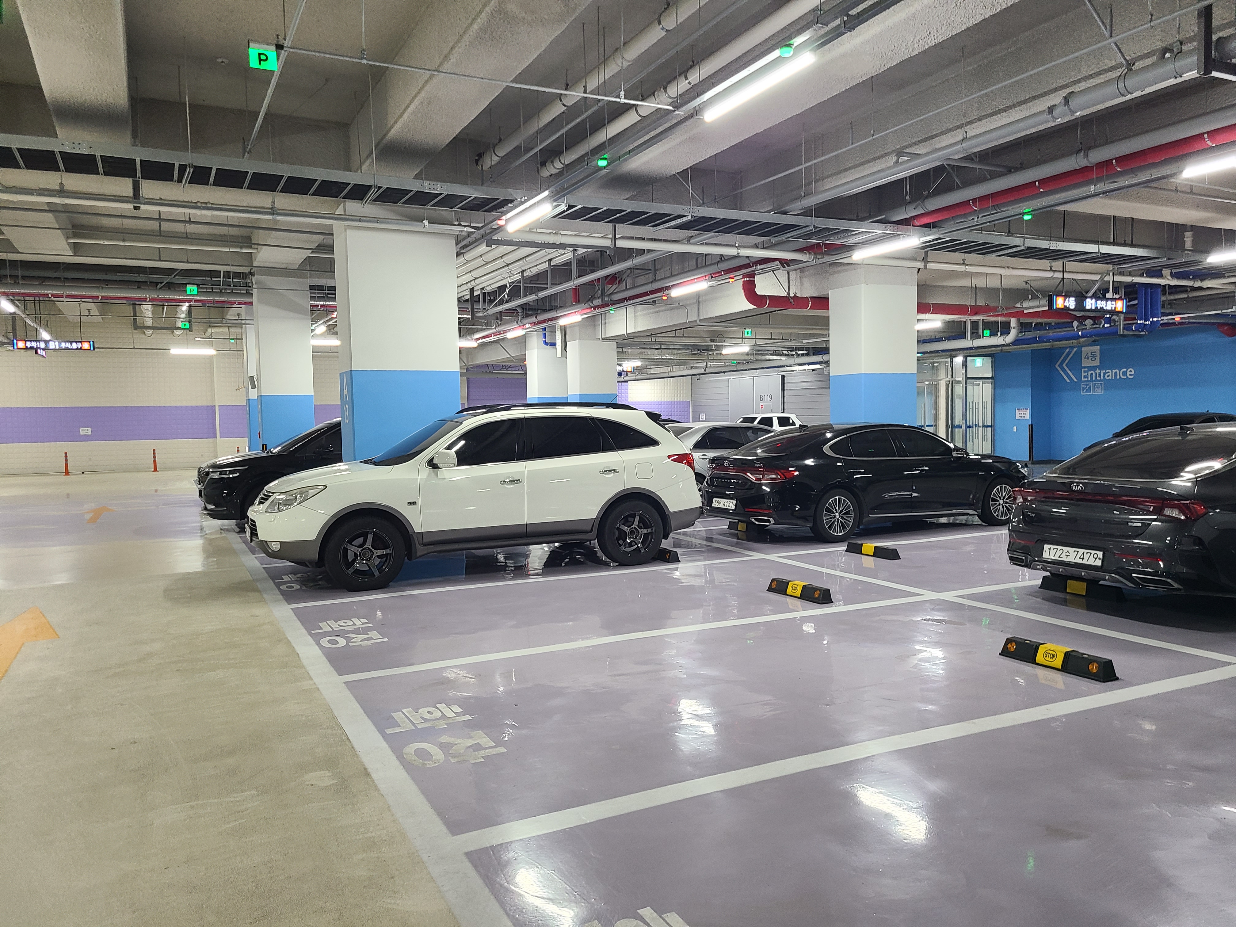 지하 1층은 드라이브인과 주차장이 함께 있었고 지하 2층은 전용 주차장이었는데 지하에서 4개동 모두 이동이 가능했고 주차공간은 넓긴했지만 4개동 모두 수용하려면 조금 부족할 수도 있을듯 했습니다.